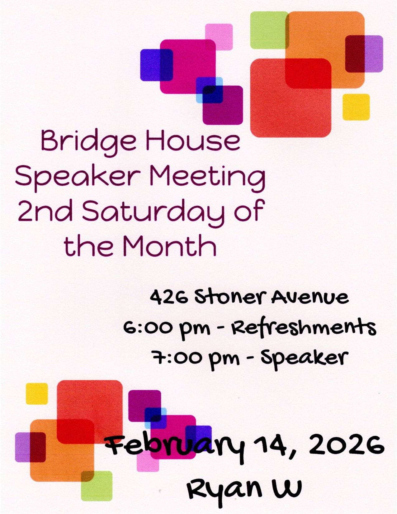 Bridge House 2nd Saturday Speaker Meeting