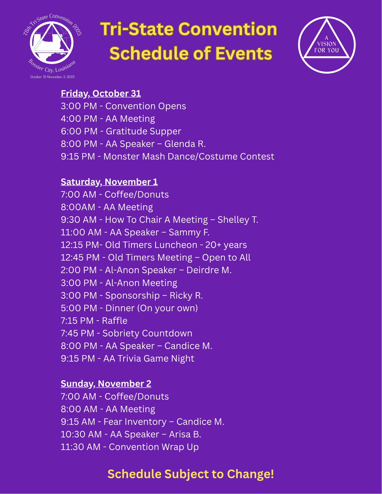 « All Events This event has passed. 78th Tri-State Convention October 31 @ 3:00 pm - November 2 @ 11:00 am « Tri-State Kick-Off Speaker Meeting- KOALA CLUB Three Legacies Conference-Hybrid Event » Add to calendar Google Calendar iCalendar Outlook 365 Outlook Live Details Start: October 31 @ 3:00 pm End: November 2 @ 11:00 am Organizer 78th Tri-State Committee Venue La Bossier Hotel & Event Center 4000 Industrial Dr. Bossier City, LA 71112 United States + Google Map Phone 318-747-0711