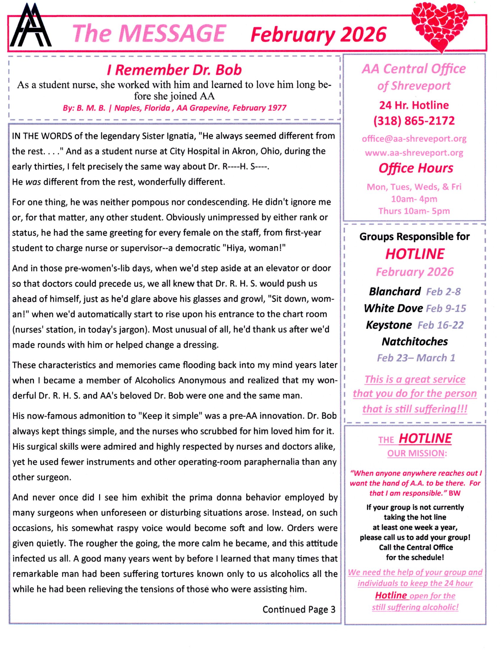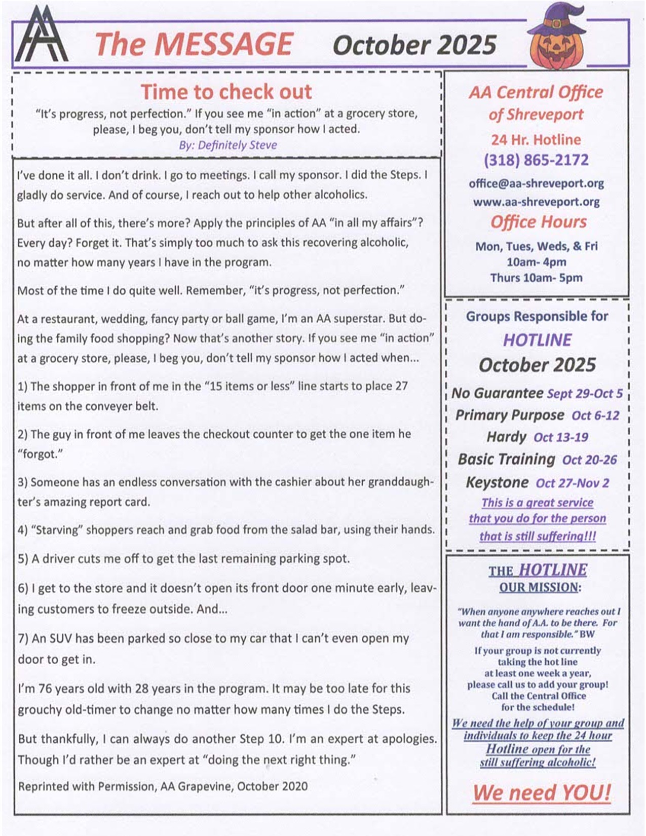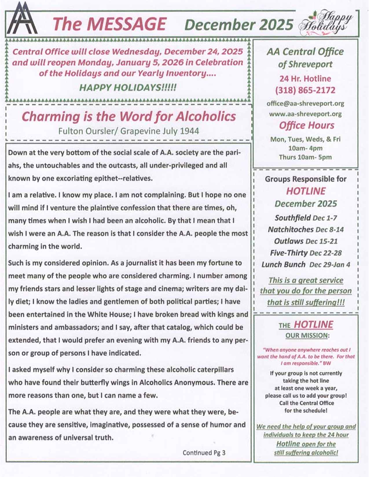 Click The Links below for our local newsletter from The Central Office of Shreveport